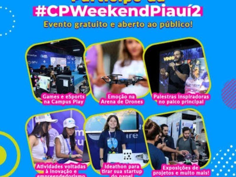 A Campus Party Weekend Piauí 2 será realizada de sexta a domingo, no Centro de Convenções de Teresina, em sua segunda edição no estado. Com entrada gratuita e aberta ao público, o festival reúne palestras, oficinas, experiências imersivas, arenas de eSports, robótica e atividades práticas que conectam tecnologia, criatividade e empreendedorismo. A coordenação local é da Secretaria de Inteligência Artificial, Economia Digital, Ciência, Tecnologia e Inovação (SIA), com apoio do Piauí Instituto de Tecnologia (PIT) e outros órgãos do Governo do Piauí.