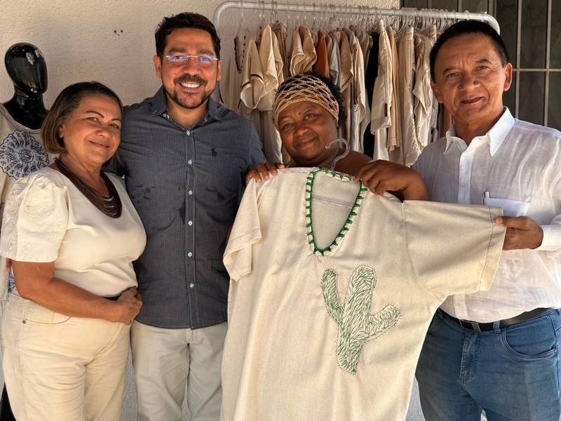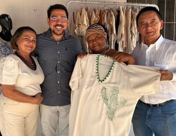 Nesta semana, o secretário municipal de Desenvolvimento Econômico e Turismo, Airton Freitas, a gerente de Economia Solidária, Jesus Pessoa, e o coordenador de Turismo, Wildson Nogueira, estiveram no Centro de Produção para parabenizar a artesã pela conquista.