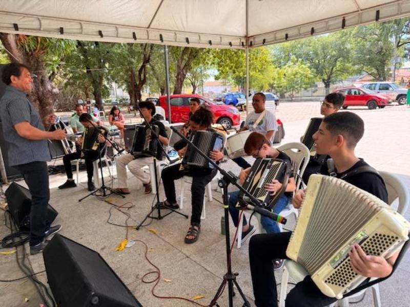 Neste domingo, a Oxente Feirinha levou à praça seus empreendedores, que apresentaram produtos variados e atraíram a atenção do público. A programação musical ficou por conta dos integrantes da Sanfona Escola e do grupo Trombone & Cia, que animaram os visitantes e contribuíram para o clima cultural da feira.