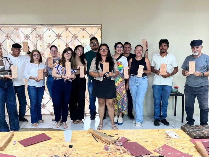 Durante a oficina, os participantes puderam aprender diretamente com o artesão, conhecendo os processos, materiais, ferramentas e significados que envolvem a arte santeira. A atividade contou com vagas limitadas, favorecendo uma experiência prática e maior proximidade entre o artesão e os alunos.