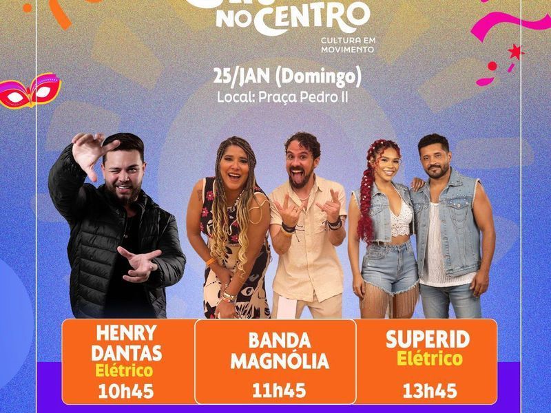 Ao longo da manhã, o público também poderá acompanhar as apresentações de Henry Dantas Elétrico, Banda Magnólia e da Banda Superid Elétrico, levando diversidade musical, animação e muita energia para a praça.