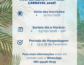 De acordo com a coordenação, o sorteio será realizado no dia 03 de fevereiro de 2026, às 10h, na sede do IPMT, localizada no Edifício Saraiva Center, nº 379. A hospedagem será para o período de 13 a 18 de fevereiro de 2026, contemplando os dias de Carnaval.
