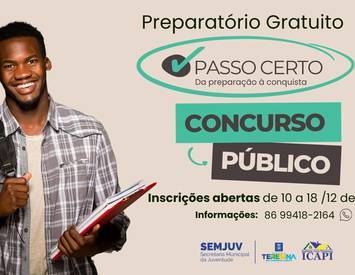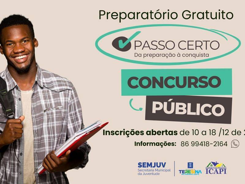 A Secretaria Municipal da Juventude anunciou o lançamento do “Passo Certo”, um curso preparatório gratuito para concurso público, desenvolvido em parceria com o Instituto ICAPI. A iniciativa tem como objetivo ampliar o acesso da juventude às oportunidades de capacitação e fortalecer a preparação para a conquista de vagas no serviço público.