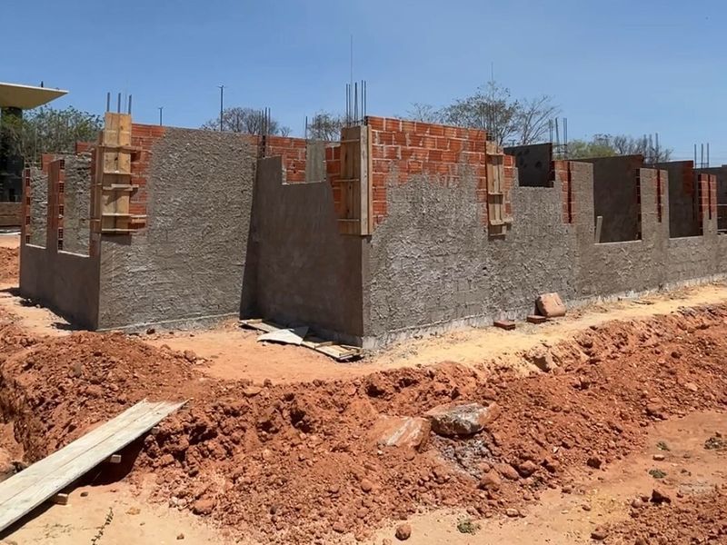 Entre os serviços em andamento, destaca-se a edificação principal, com fundações e alvenaria finalizadas, prontas para receber a estrutura da laje. O Sistema de Proteção contra Descargas Atmosféricas (SPDA) está sendo instalado, para garantir o aterramento elétrico, e já foi iniciada também a escavação da estrutura da guarita.