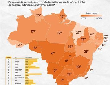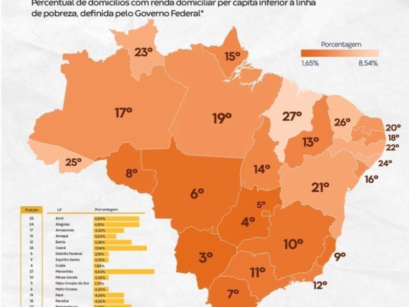 O levantamento considera como famílias pobres aquelas com renda per capita mensal de até R$ 218, conforme decreto federal de 2023. O estudo revela ainda que o estado com maior proporção de famílias nessa condição é o Maranhão, que registra 8,54%.