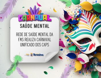Amanhã, 8 de fevereiro, às 16 horas, muita alegria e descontração no Estacionamento da Ponte Estaiada. Será realizado o carnaval dos Centros de Atenção Psicossocial (CAPS) de Teresina. O evento foi organizado pela Gerência de Saúde Mental da Fundação Municipal de Saúde (FMS) com apoio da Prefeitura de Teresina e da Secretaria Municipal de Comunicação Social.