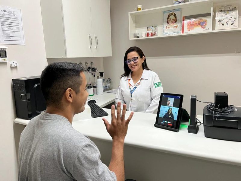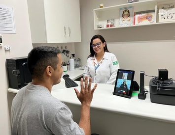 De forma simples e prática, a comunicação ocorre por meio de videochamada, na qual um intérprete de Libras traduz em tempo real a fala do paciente para o profissional de saúde e vice-versa.