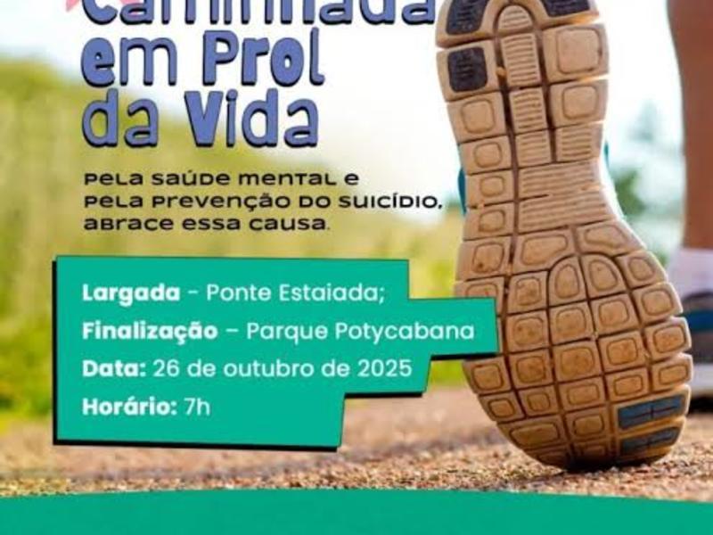 A Secretaria da Saúde do Piauí (Sesapi), por meio da Diretoria de Atenção à Saúde Mental, realiza, no dia 26 de outubro, a 1ª Caminhada em Prol da Vida: pela Saúde Mental e Prevenção do Suicídio. O evento tem como objetivo mobilizar a sociedade para a importância do cuidado com a saúde mental e valorização da vida.