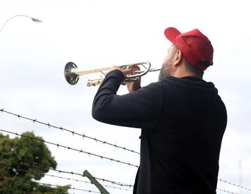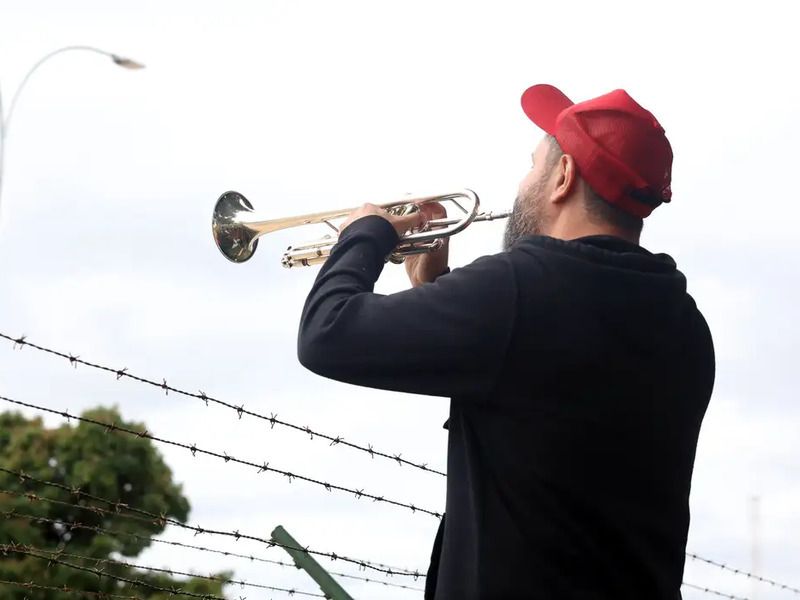 Logo cedo, o músico Fabiano Trompetista foi ao local para tocar a marcha fúnebre, em alusão à prisão de Bolsonaro.